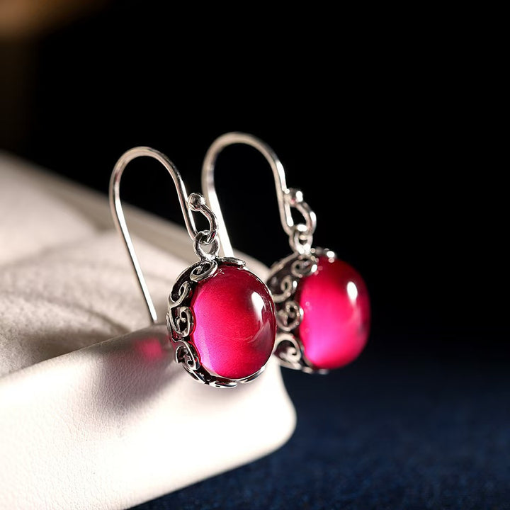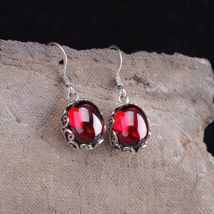 Rich Garnet Accent: The use of genuine garnet gemstones imparts a deep, vibrant red color that adds a touch of luxury and charm. Each garnet's distinct color and sheen make the earrings truly special.