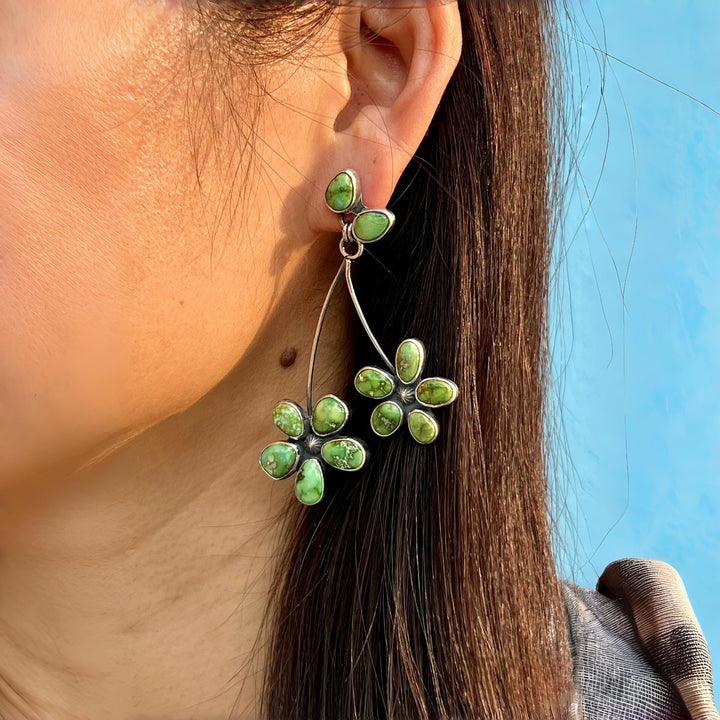 Meticulously handcrafted by artisans, these silver turquoise earrings embody natural beauty and individuality. Each piece features flower-set turquoise gemstones in sterling silver, blending rustic elegance with bohemian artistry. The oxidized finish enhances the vintage character while highlighting the gemstone’s vibrant hue. Designed for both comfort and style, these earrings are perfect for free-spirited souls who value unique, nature-inspired jewelry.