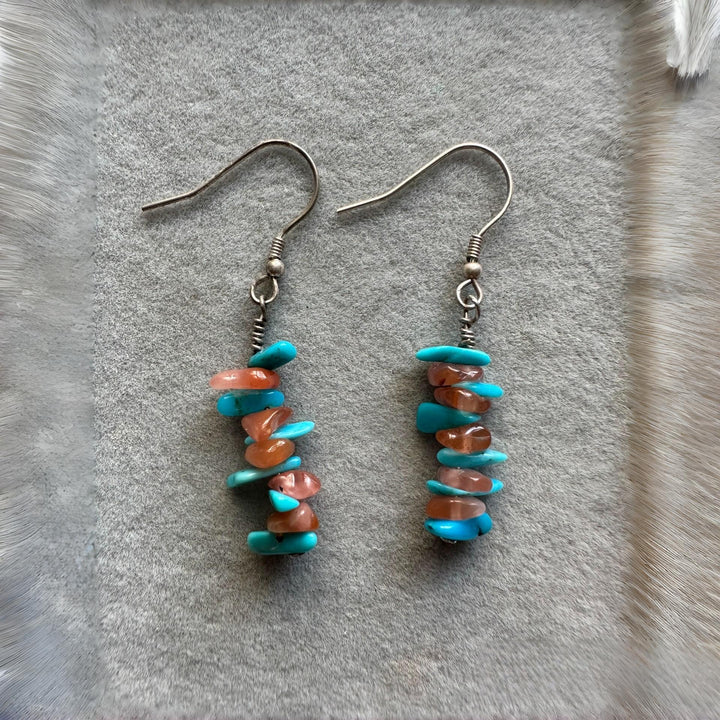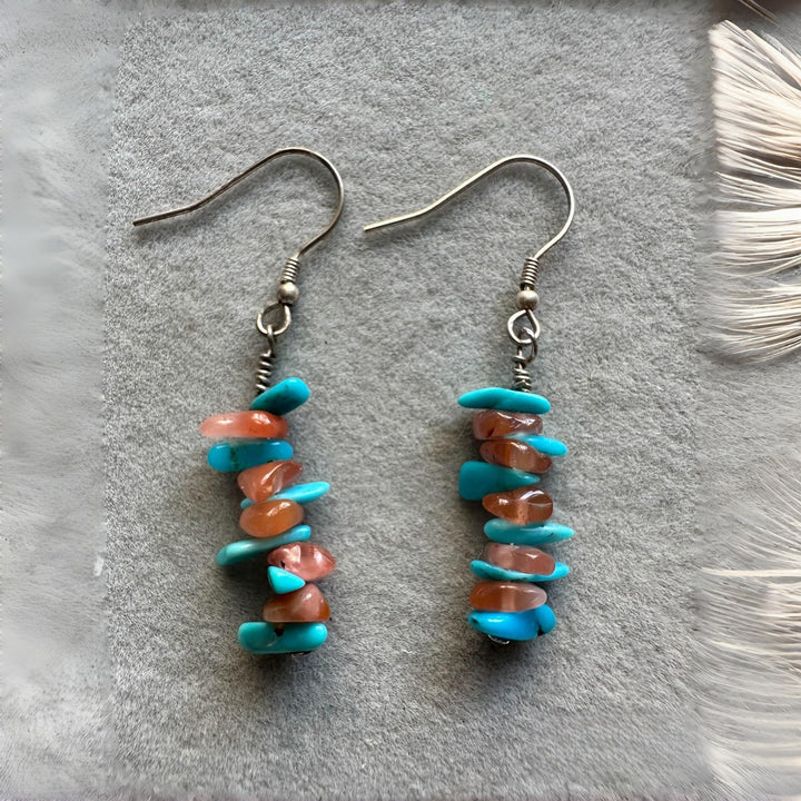 Bohemian Natural Turquoise and Ruby Earrings for Women