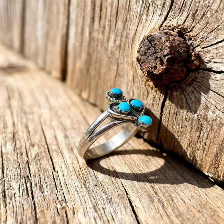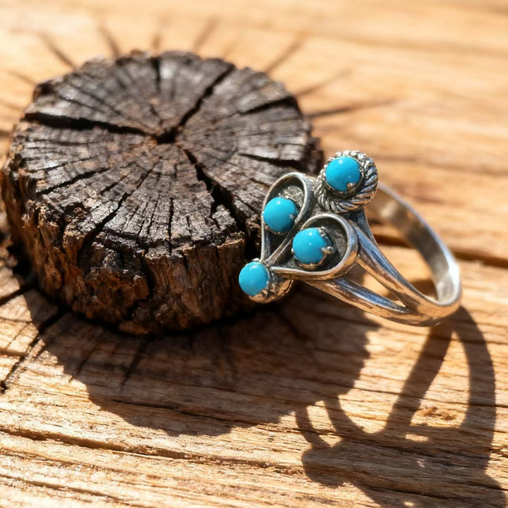The artistry is evident in every detail, from the precise setting of each turquoise stone to the meticulous forging of the 925 sterling silver band. This ring is a perfect blend of ethnic authenticity and wearable charm, ideal for women drawn to Native American, Navajo-inspired, and handcrafted accessories. Whether worn as a statement piece, a celebration of cultural artistry, or a daily expression of bold color, this ring is sure to become a cherished part of your jewelry collection.