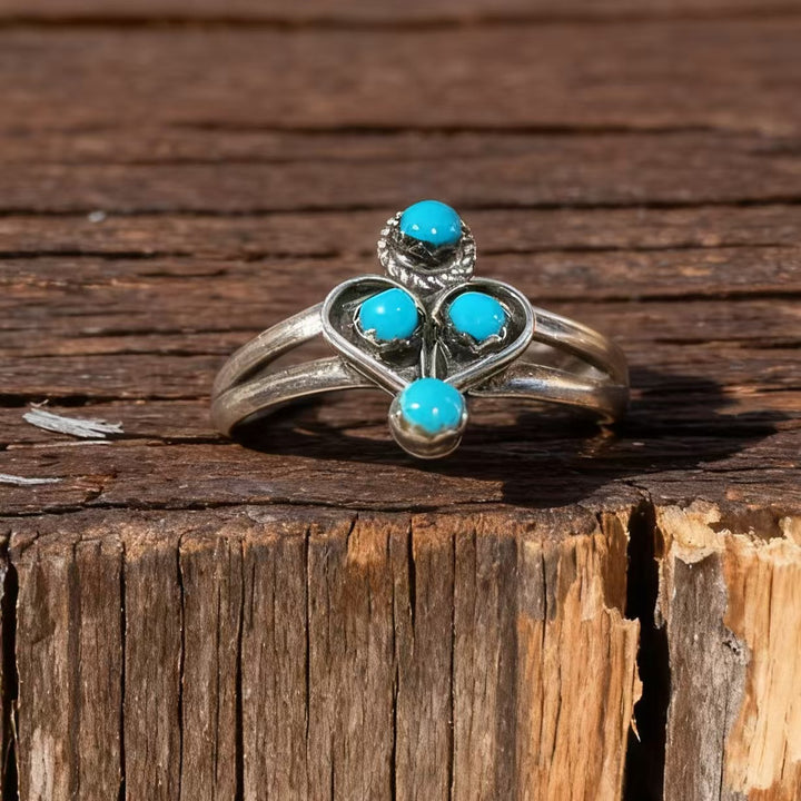 Authentic Navajo Multi-Turquoise Design: The cluster of turquoise stones, set in a textured silver band with heart-inspired detailing, carries deep cultural symbolism in Navajo art—representing connection to nature and spiritual harmony. Its design is versatile, effortlessly complementing a range of looks from bohemian-inspired outfits to everyday casual wear.