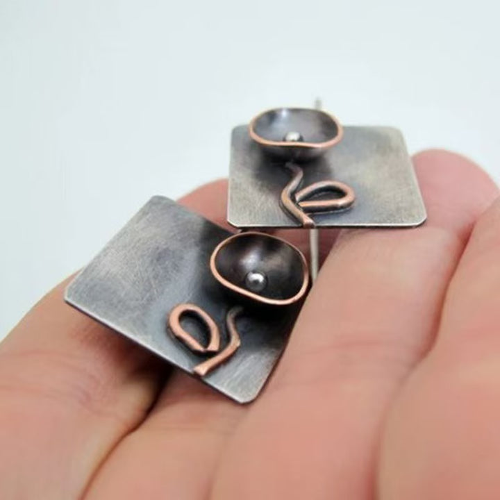 Meticulously handcrafted by artisans, these Square Flower Earrings blend rustic charm with bohemian elegance. Featuring floral-inspired silverwork and natural gemstone accents, each pair highlights individuality and creativity. Perfect for those who appreciate jewelry that is both artistic and one-of-a-kind.