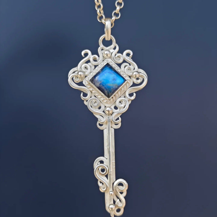 Artisan Handmade: Each necklace is meticulously crafted by hand. Skilled artisans painstakingly shape the 925 silver into the intricate key design, forge the detailed scrollwork, and carefully inlay the moonstone. This attention to detail ensures that every piece is unique and of the highest quality.
