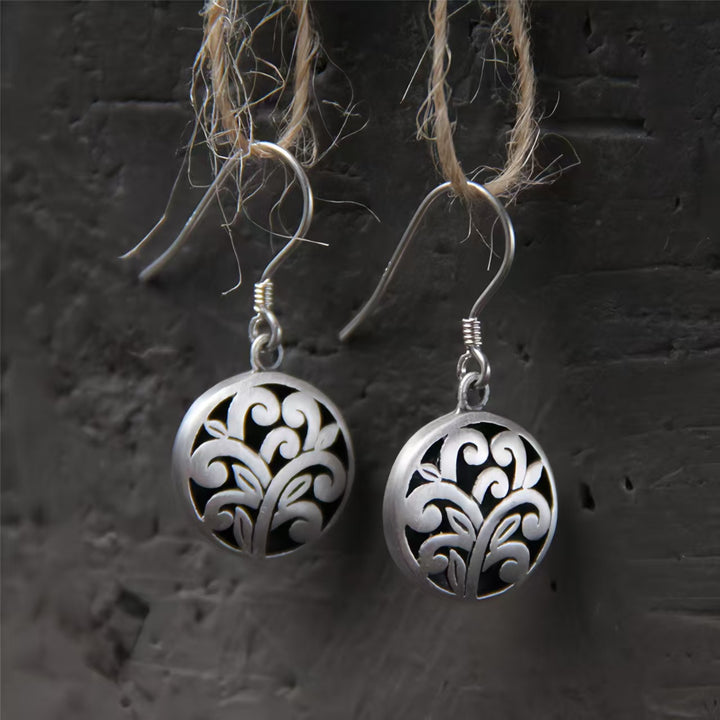 Handmade 925 Sterling Silver Vintage Filigree Circle Earrings for Women