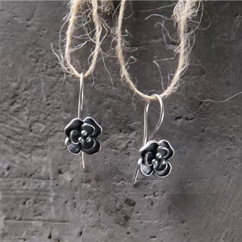 Handmade 925 Sterling Silver Vintage Floral Earrings for Women