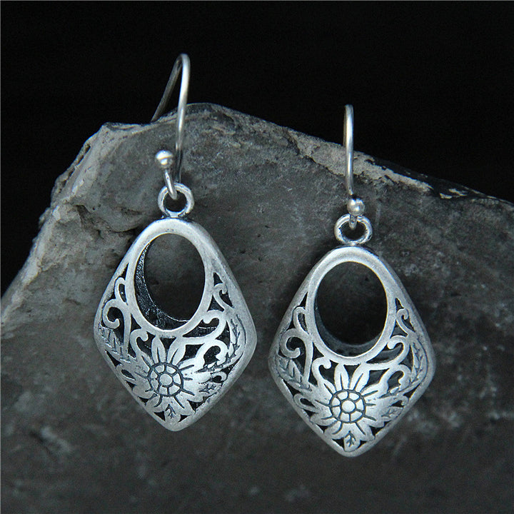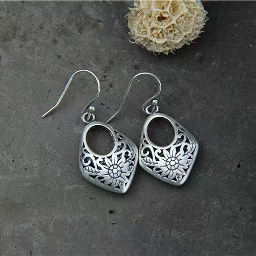 Handmade 925 Sterling Silver Vintage Floral Filigree Earrings for Women