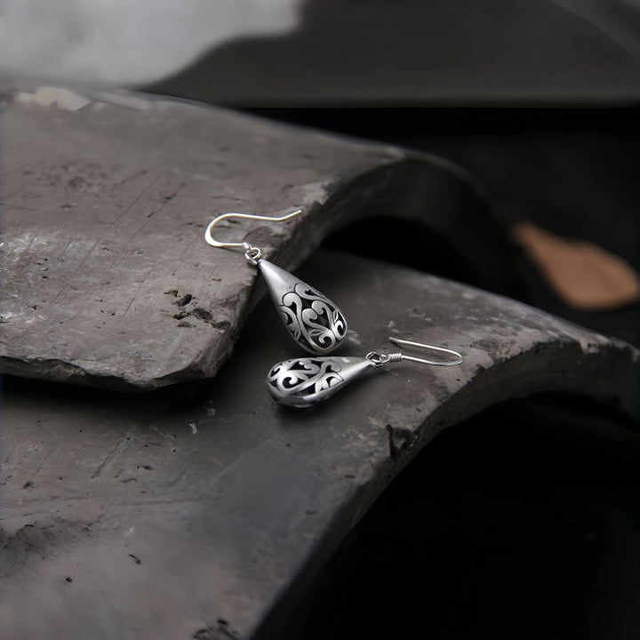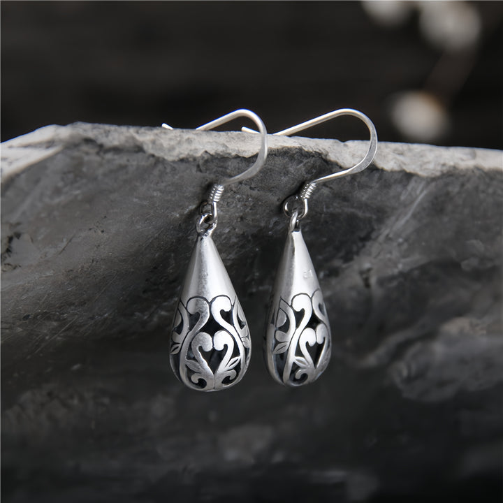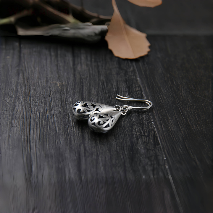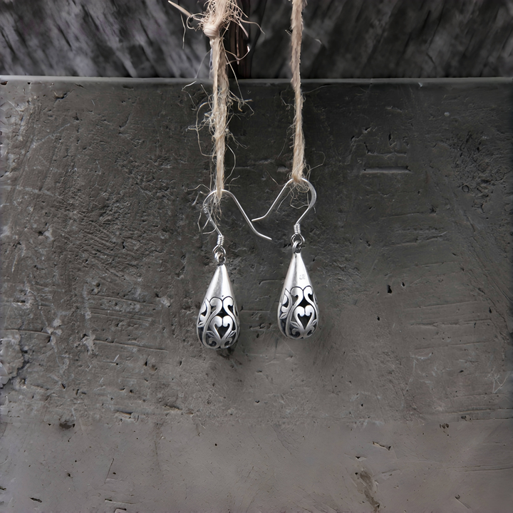 Handmade 925 Sterling Silver Vintage Teardrop Filigree Earrings for Women