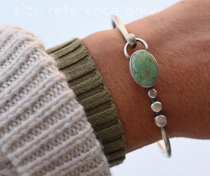 Elevate your jewelry collection with this handmade adjustable vintage women’s bracelet, featuring the natural beauty of genuine Kingman turquoise. Renowned for its vibrant blue-green hue and unique veining, Kingman turquoise brings a touch of Southwestern charm to this sterling silver piece. Carefully handcrafted by skilled artisans, the bracelet embodies timeless elegance and artisanal detail. The adjustable design ensures a comfortable fit for various wrist sizes, making it versatile for both daily wear and special occasions. Whether purchased as a meaningful gift or a personal keepsake, this bracelet captures the essence of vintage artistry and natural beauty.