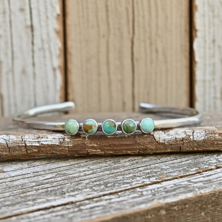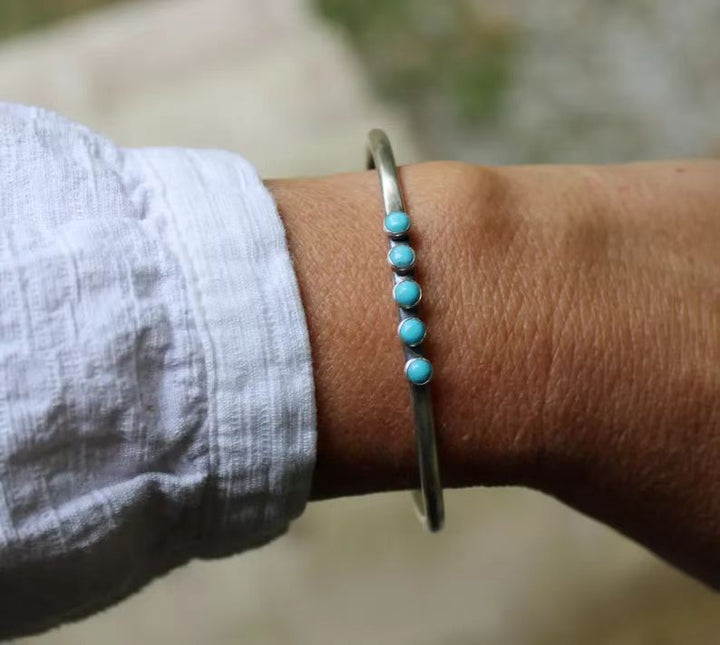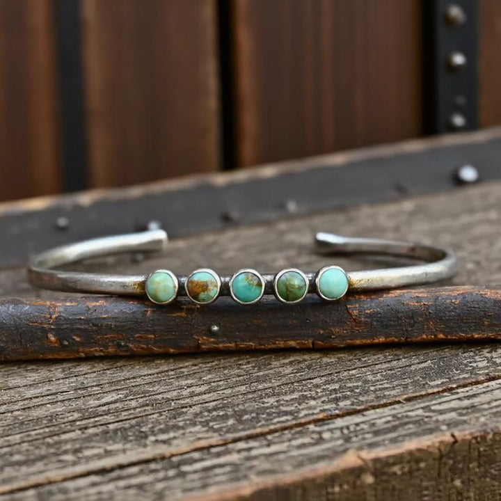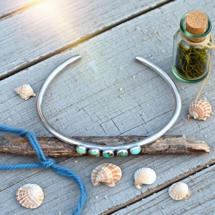 Elevate your jewelry collection with this exquisitely handmade adjustable vintage cuff bracelet, designed for women who appreciate timeless elegance. Featuring authentic Kingman turquoise sourced from Arizona, each stone showcases natural color variations and unique patterns, making every bracelet truly one of a kind. The vintage-inspired sterling silver cuff enhances its rustic charm, while the adjustable fit ensures comfort and versatility. Handcrafted by skilled artisans, this bracelet is more than just jewelry—it’s a wearable piece of Southwestern artistry. Perfect for both everyday wear and special occasions, it embodies individuality, craftsmanship, and natural beauty.