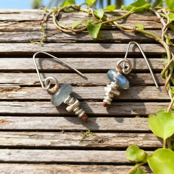 Immerse yourself in the enchanting world of bohemian fashion with these exquisitely handmade 925 silver earrings. Each earring showcases a delicate 925 silver hook, elegantly adorned with a smooth, shimmering moonstone and meticulously arranged silver beads. The moonstone, with its ethereal play of light, casts a soft, iridescent glow, perfectly complementing the sleek luster of the 925 silver. Ideal for women who cherish unique, artisanal jewelry, these earrings are the perfect accessory to add a touch of bohemian elegance to any outfit. Whether you're attending a music festival, a casual outdoor gathering, or simply looking to elevate your daily look, these earrings are sure to become a beloved part of your collection.