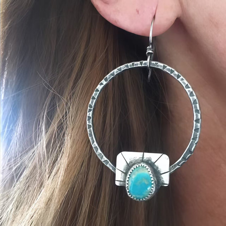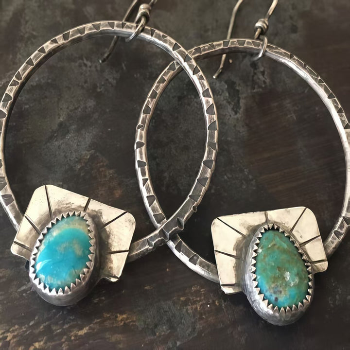 Artisan Handmade: Every pair of these earrings is painstakingly crafted by hand, ensuring that each piece is truly one - of - a - kind. From shaping the 925 silver into the textured hoop to precisely setting the turquoise stone, every step reflects exceptional craftsmanship and attention to detail.