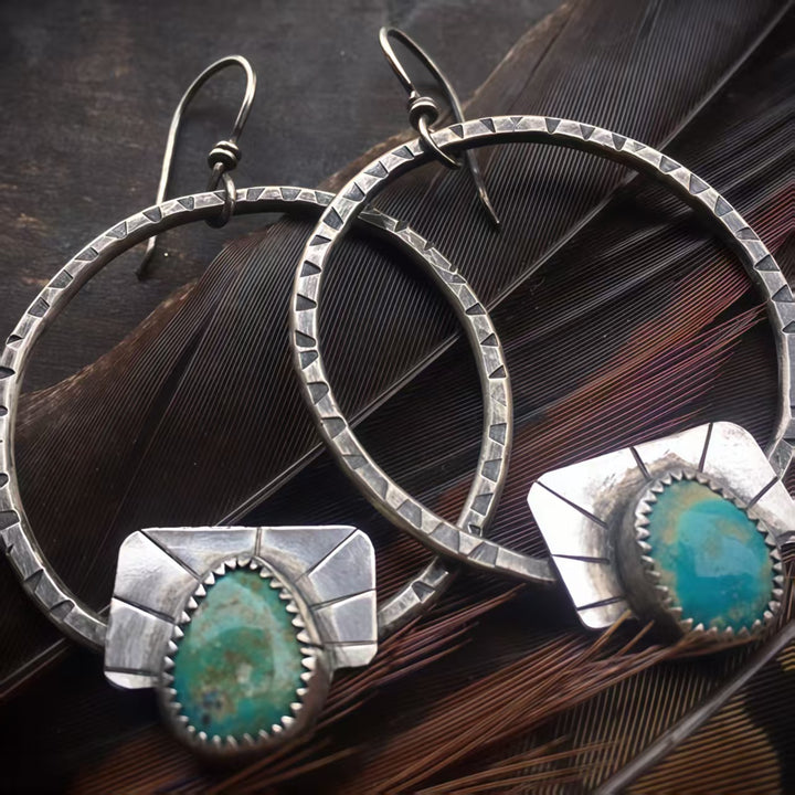 Handmade Bohemian 925 Silver Hoop Earrings with Turquoise