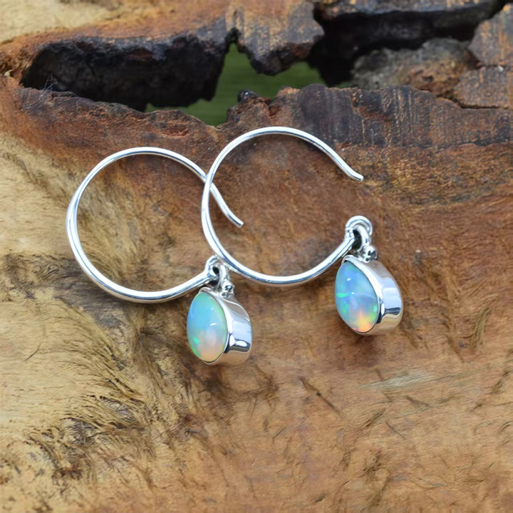 Unique Opal Teardrop Design: The combination of the teardrop - shaped opal and the sleek 925 silver hoop creates a distinct and eye - catching design. The opal's color play makes these earrings a standout accessory that can effortlessly complement a wide range of outfits, from bohemian - inspired dresses to casual everyday wear.