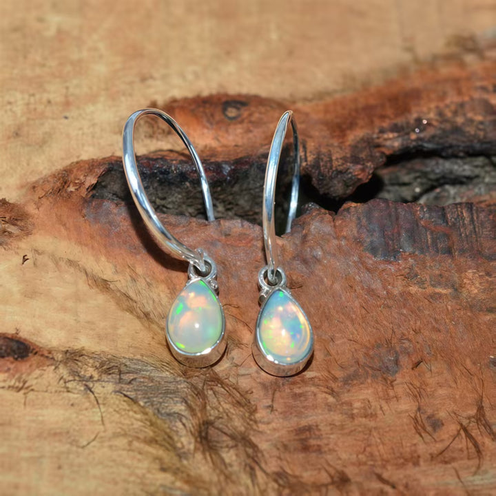 Handmade Bohemian 925 Silver Opal Teardrop Earrings