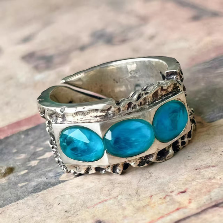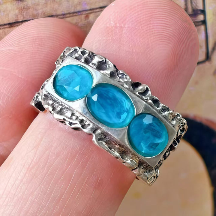 Versatile Styling: Ideal for various occasions, this ring can add a touch of bohemian charm and colorful elegance to your look, whether it’s daytime or evening. It pairs beautifully with other silver or sapphire jewelry for a coordinated, stylish ensemble.