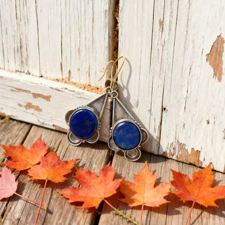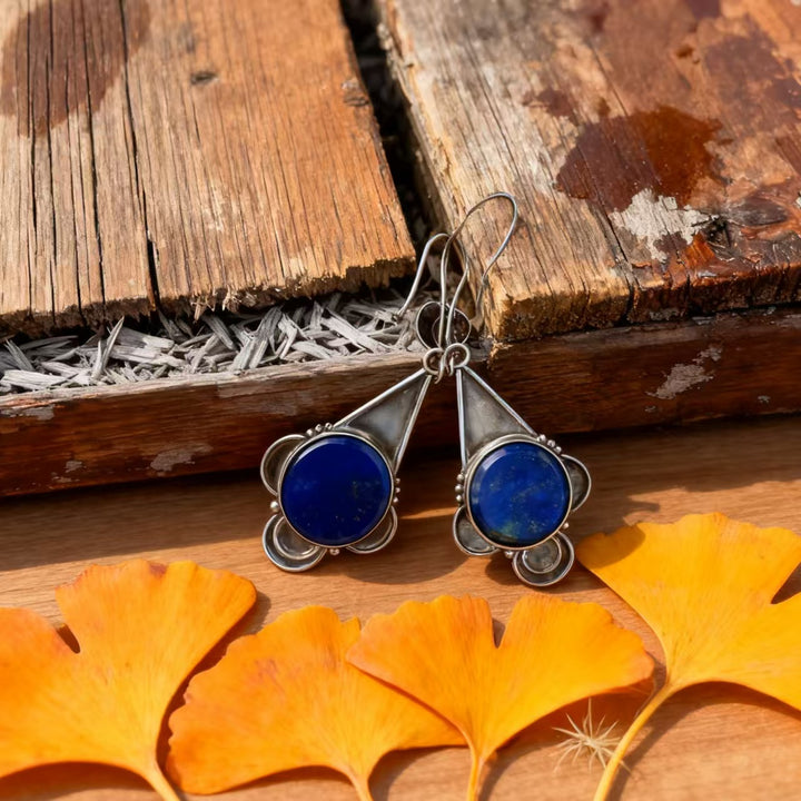 The craftsmanship is evident in every detail, from the precise setting of each lapis lazuli stone to the meticulous shaping of the 925 sterling silver Art Deco elements. These earrings are a perfect blend of artistic flair and retro charm, ideal for women drawn to bohemian and vintage-inspired accessories. Whether you’re at a formal event, a casual gathering, or simply infusing your daily look with boho sophistication, these earrings are sure to become a beloved part of your jewelry collection.