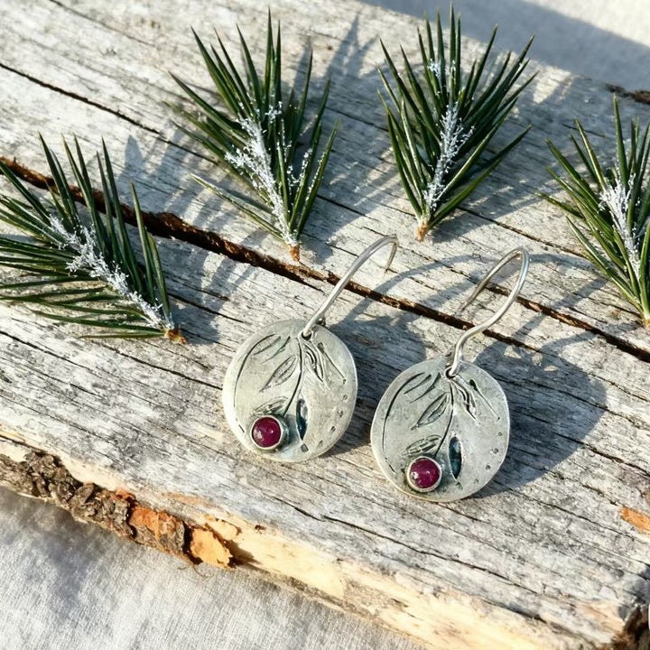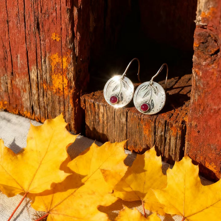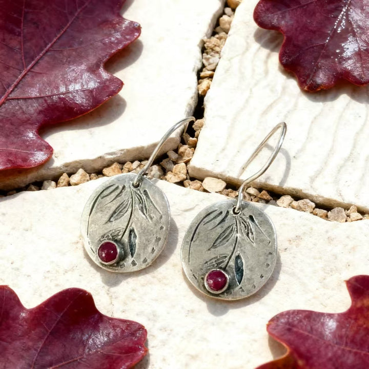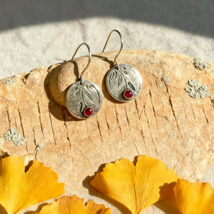 Artisan Handmade: Meticulously crafted by hand, each pair is one-of-a-kind. Every step, from shaping the 925 sterling silver into disc forms to setting the red agate gems and adding botanical stamping, reflects exceptional craftsmanship and attention to detail.
