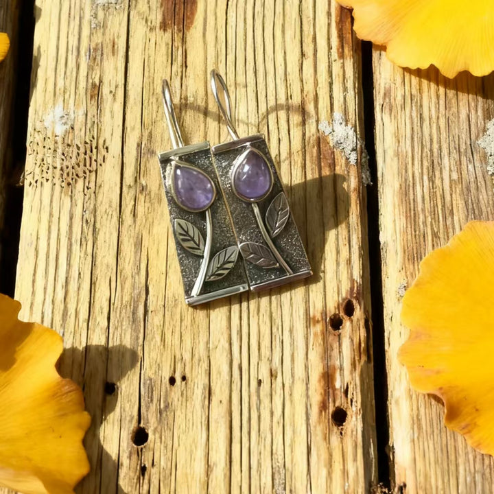 Unique Botanical & Silver Design: The combination of amethyst accents, textured silver leaf detailing, and rectangular structuring creates a distinct bohemian-nature look. It’s both organic and versatile, effortlessly complementing a range of outfits from flowy bohemian dresses to casual denim ensembles.