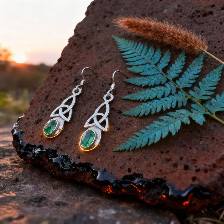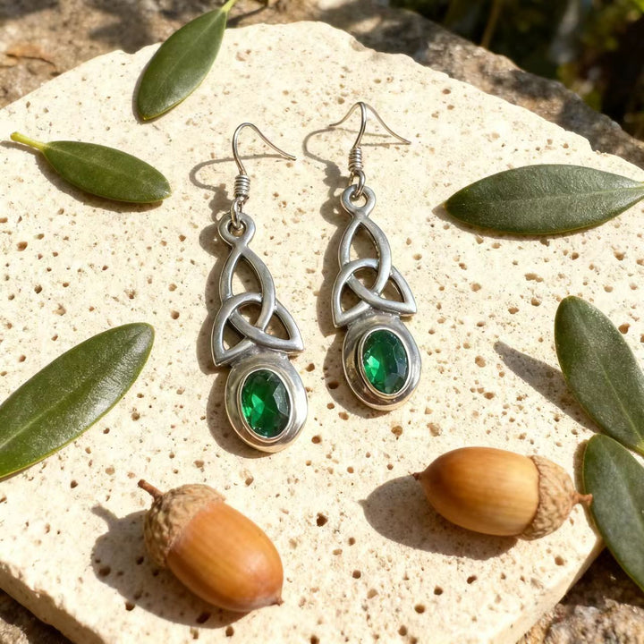 Artisan Handmade: Meticulously crafted by hand, each pair is one-of-a-kind. Every step, from shaping the 925 sterling silver into Celtic knot forms to setting the green crystal gems, reflects exceptional craftsmanship and attention to detail.