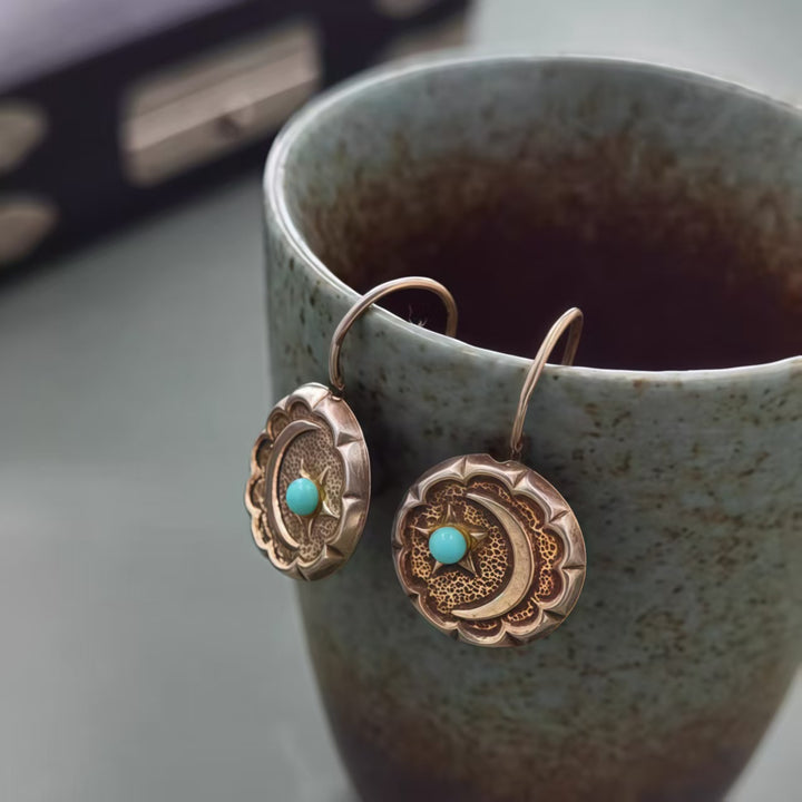 The craftsmanship is evident in every detail, from the careful selection and setting of each turquoise stone to the precise shaping and texturing of the 925 sterling silver. These earrings are a perfect blend of artistic flair and celestial charm, ideal for women drawn to bohemian-inspired accessories. Whether you’re at a music festival, a casual gathering, or simply infusing your daily look with boho flair, these earrings are sure to become a beloved part of your jewelry collection.