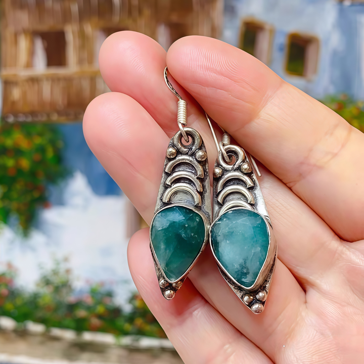 Artisan Handmade: Meticulously crafted by hand, each pair is one-of-a-kind. Every step, from shaping the 925 sterling silver to setting the amazonite stones, reflects exceptional craftsmanship and attention to detail.