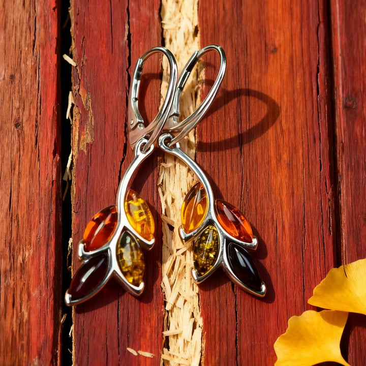 Artisan Handmade: Meticulously crafted by hand, each pair is one-of-a-kind. Every step, from shaping the 925 sterling silver into leaf forms to setting the amber and garnet stones, reflects exceptional craftsmanship and attention to detail.