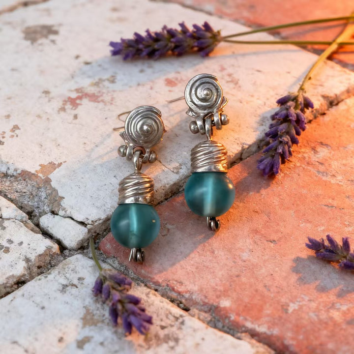 Artisan Handmade: Meticulously crafted by hand, each pair is one-of-a-kind. Every step, from shaping the 925 sterling silver into spiral forms to setting the aquamarine stones, reflects exceptional craftsmanship and attention to detail.