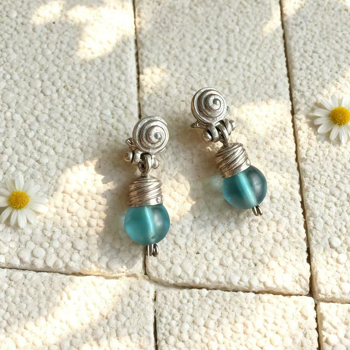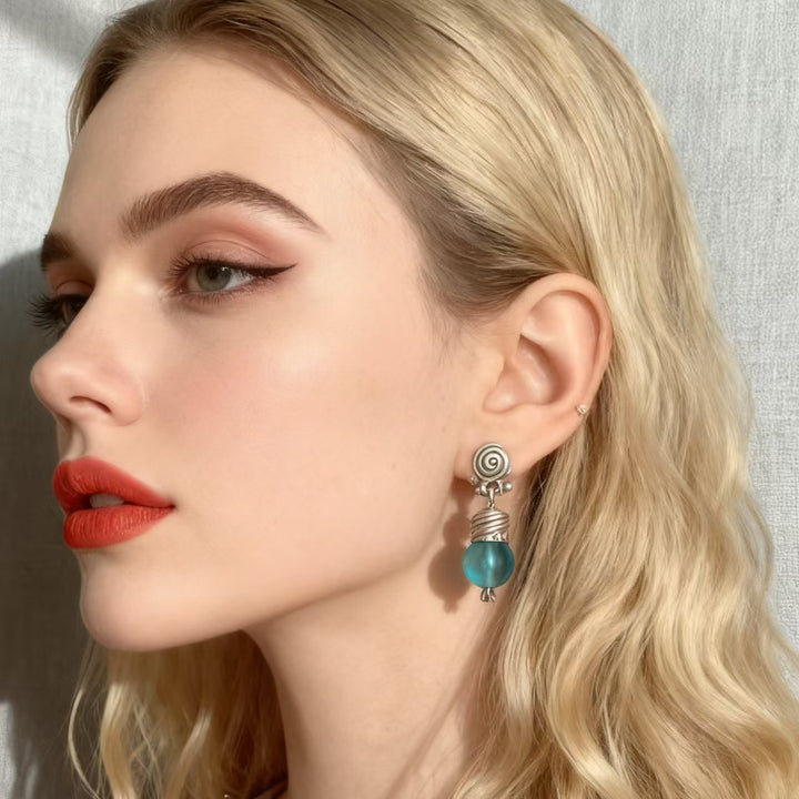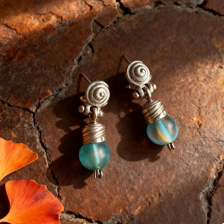 Unique Aquamarine & Spiral Silver Design: The combination of aquamarine and intricate spiral silver detailing creates a distinct bohemian look. It’s both eye-catching and nature-inspired, effortlessly complementing a range of outfits from flowy bohemian dresses to casual denim ensembles.