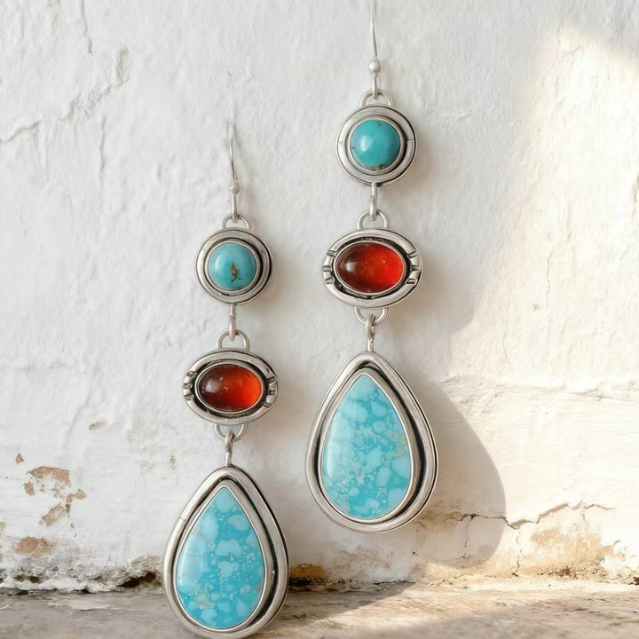 Artisan Handmade: Meticulously crafted by hand, each pair is one-of-a-kind. Every step, from shaping the 925 sterling silver to setting the garnet and turquoise stones, reflects exceptional craftsmanship and attention to detail.