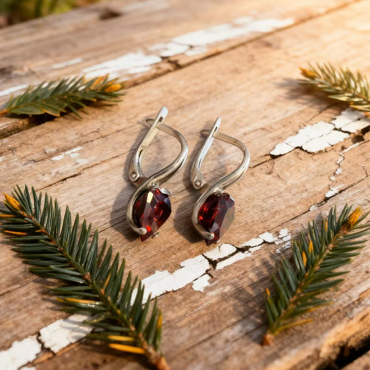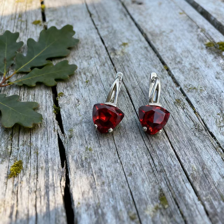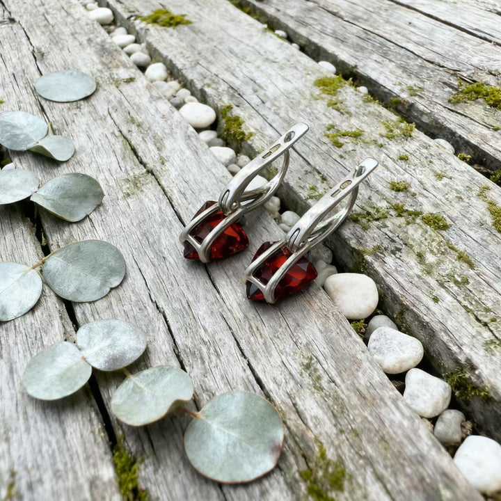 Artisan Handmade: Meticulously crafted by hand, each pair is one-of-a-kind. Every step, from shaping the 925 sterling silver to setting the heart-shaped garnet stones, reflects exceptional craftsmanship and attention to detail.