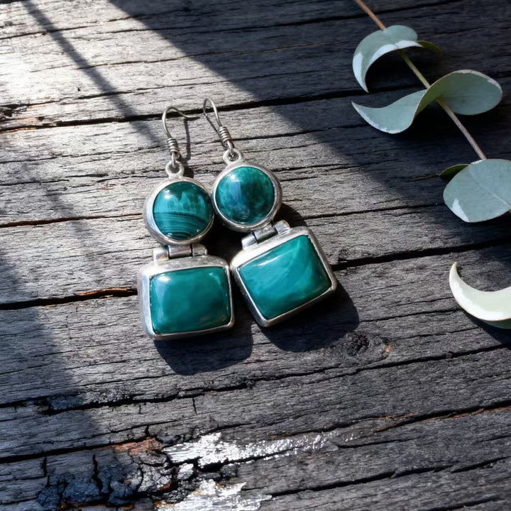 The craftsmanship is evident in every detail, from the precise setting of each malachite stone to the meticulous shaping of the 925 sterling silver elements. These earrings are a perfect blend of artistic flair and earthy charm, ideal for women drawn to bohemian-inspired accessories. Whether you’re at a music festival, a casual gathering, or simply infusing your daily look with boho elegance, these earrings are sure to become a beloved part of your jewelry collection.