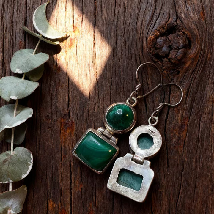 Artisan Handmade: Meticulously crafted by hand, each pair is one-of-a-kind. Every step, from shaping the 925 sterling silver to setting the malachite stones, reflects exceptional craftsmanship and attention to detail.