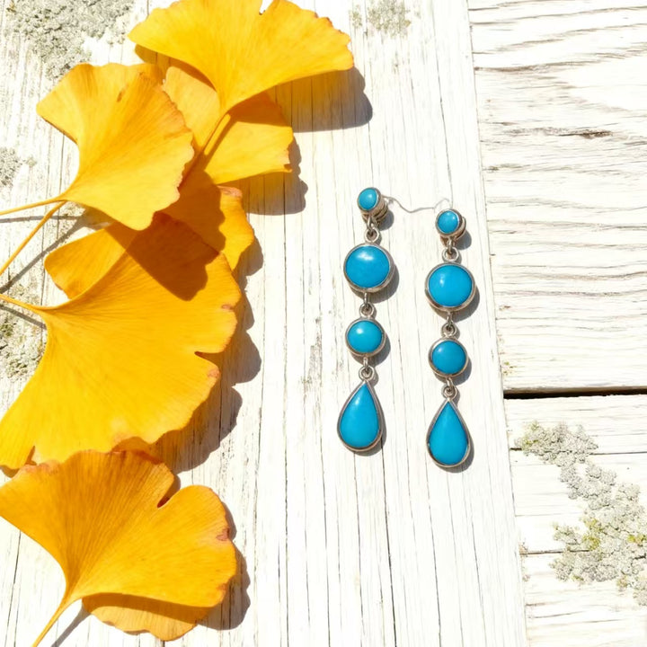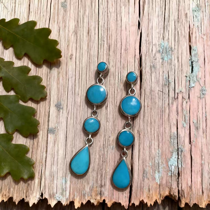Handmade Bohemian 925 Sterling Silver Dangle Earrings with Multi-Turquoise Accents