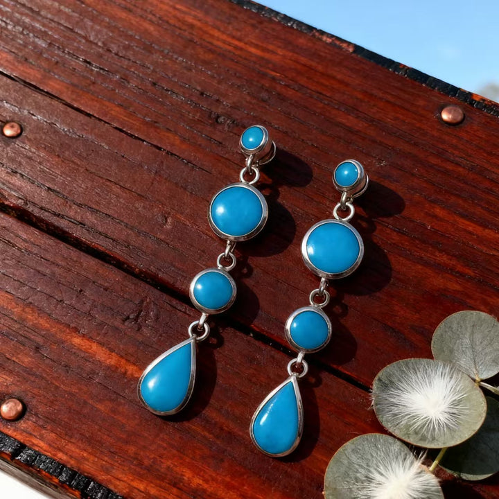 Premium 925 Sterling Silver & Turquoise Material: Made from high-quality 925 sterling silver and vivid turquoise, these earrings offer a harmonious blend of metallic luster and gemstone vibrancy. Silver’s hypoallergenic properties make them suitable for sensitive ears, enabling comfortable all-day wear.