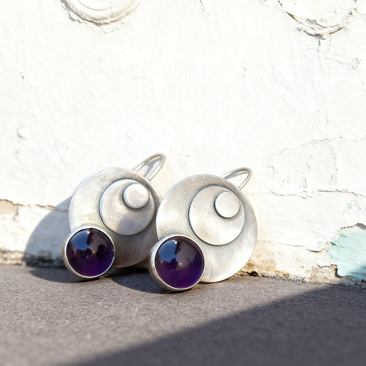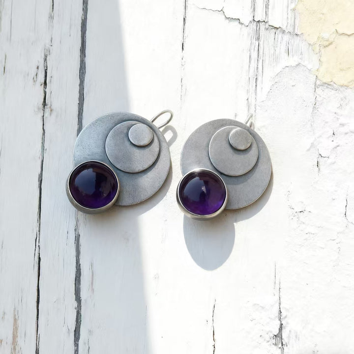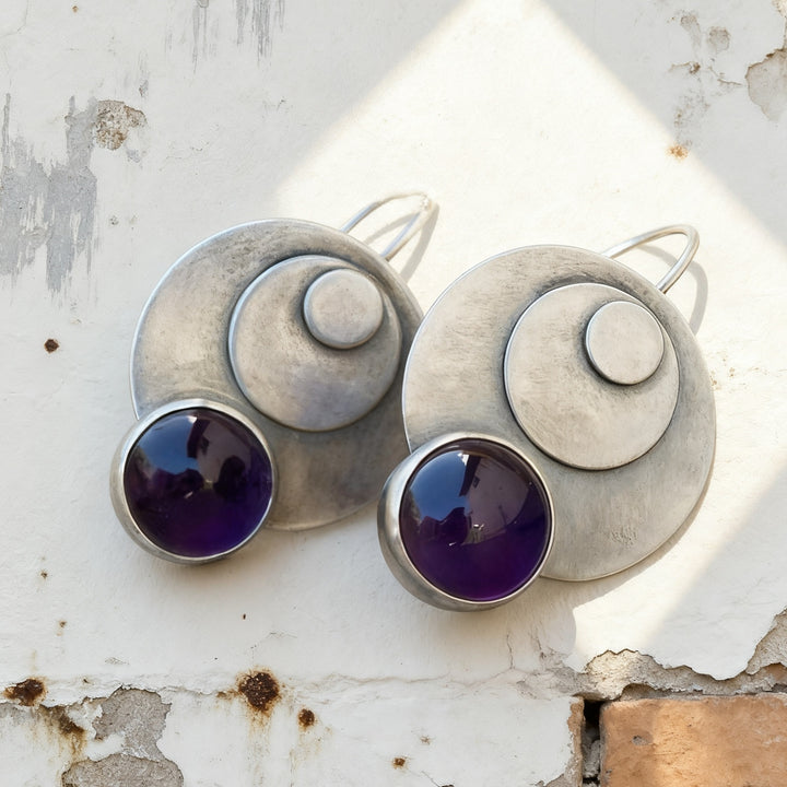 Unique Geometric & Purple Agate Design: The combination of layered silver circles and the purple agate creates a distinct bohemian look. It’s both avant-garde and versatile, effortlessly complementing a range of outfits from flowy bohemian dresses to sleek modern ensembles.