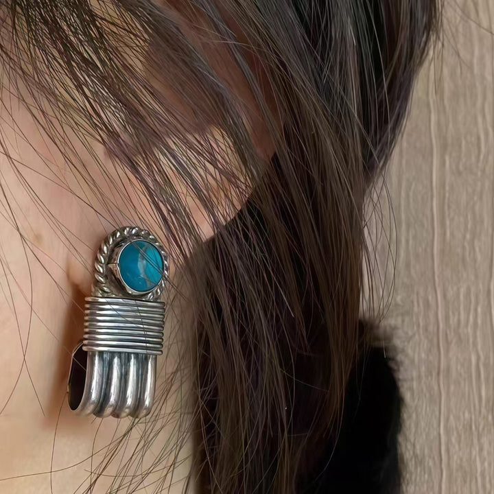 The craftsmanship is evident in every detail, from the precise setting of each turquoise stone to the meticulous coiling and shaping of the 925 sterling silver elements. These earrings are a perfect blend of artistic flair and cultural charm, ideal for women drawn to bohemian-inspired accessories. Whether you’re at a music festival, a casual gathering, or simply infusing your daily look with boho elegance, these earrings are sure to become a beloved part of your jewelry collection.