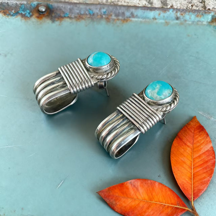 Artisan Handmade: Meticulously crafted by hand, each pair is one-of-a-kind. Every step, from shaping and coiling the 925 sterling silver to setting the turquoise stones, reflects exceptional craftsmanship and attention to detail.