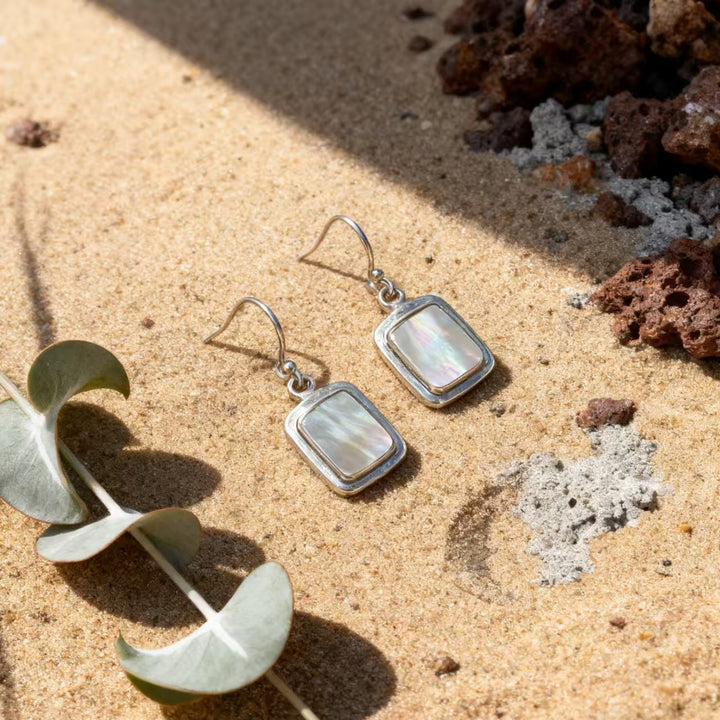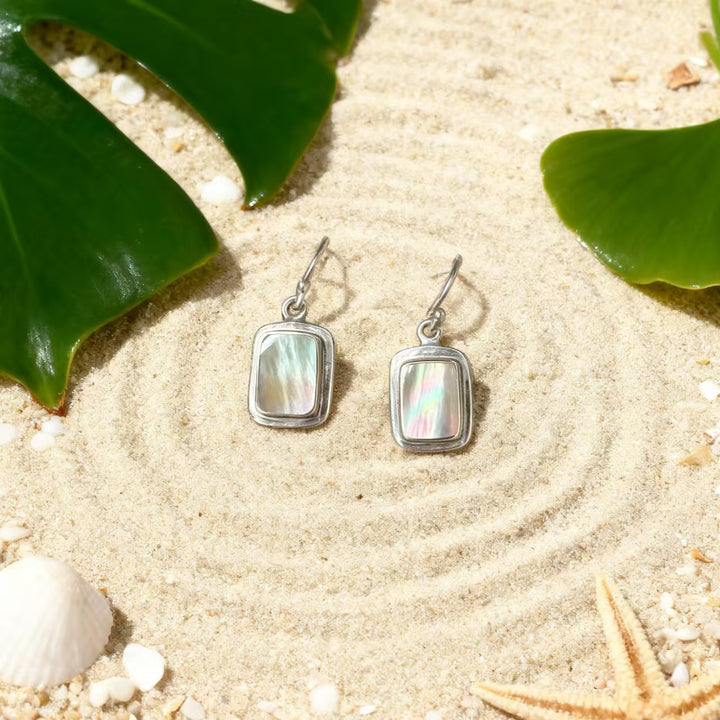 Step into the world of bohemian elegance with these exquisitely handmade 925 sterling silver earrings. Each earring features a refined design, showcasing iridescent white mother-of-pearl (MOP) that embodies the free-spirited essence of bohemian style. The silver framework, with its polished finish and minimalist detailing, makes these earrings a standout accessory for anyone who values unique, hand-crafted jewelry.