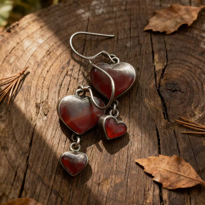 Artisan Handmade: Each pair is meticulously crafted by hand, ensuring every piece is one-of-a-kind. From shaping the 925 sterling silver into the double-heart form to setting the red agate, every step reflects exceptional craftsmanship and attention to detail.