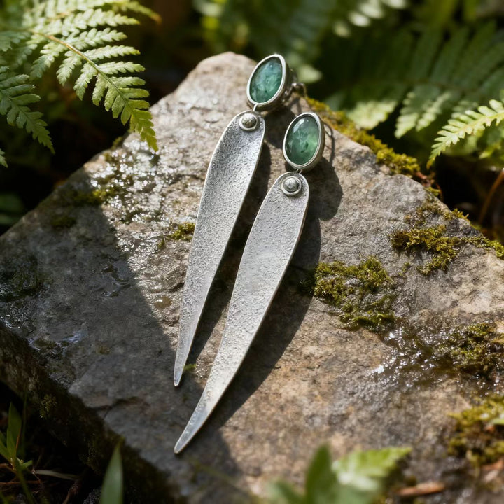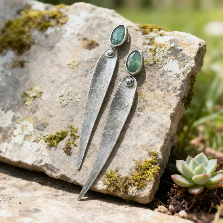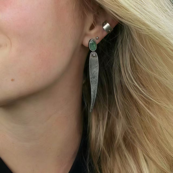Handmade Bohemian 925 Sterling Silver Drop Earrings with Green Agate Accents