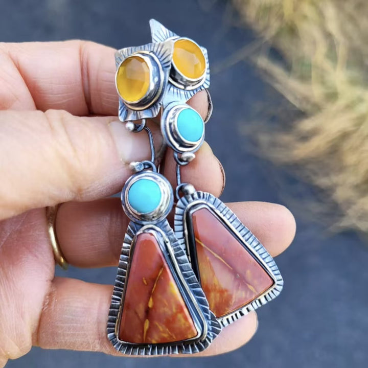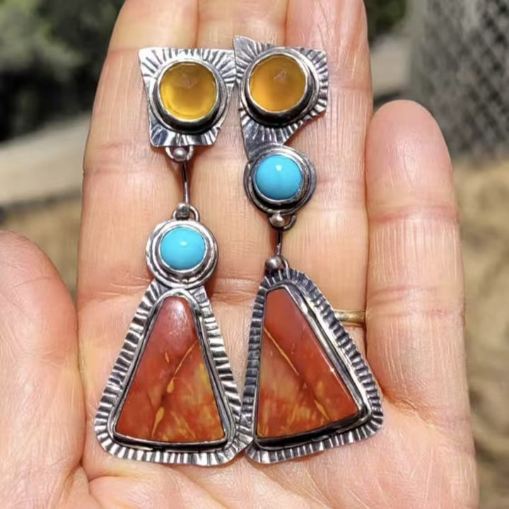 Artisan Handmade: Each pair is meticulously crafted by hand, ensuring every piece is one - of - a - kind. From shaping the 925 sterling silver to setting the multi - natural gemstones (turquoise, orange spiny oyster, yellow agate), every step reflects exceptional craftsmanship and attention to detail.