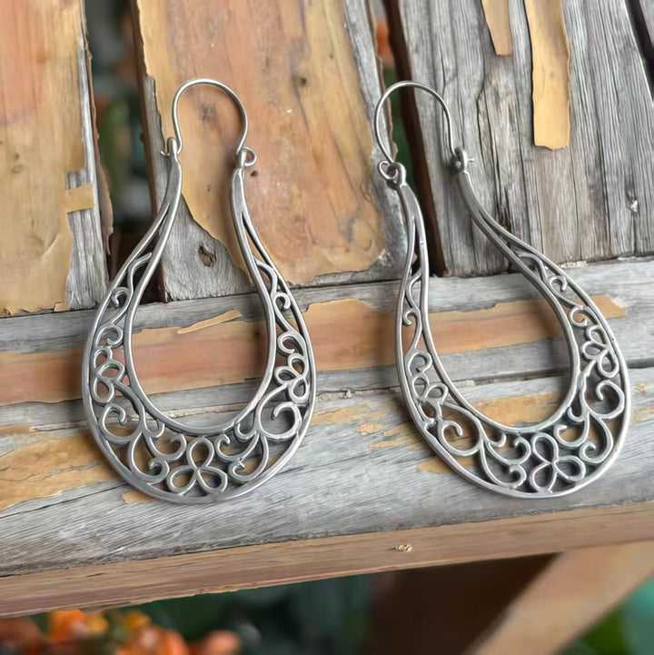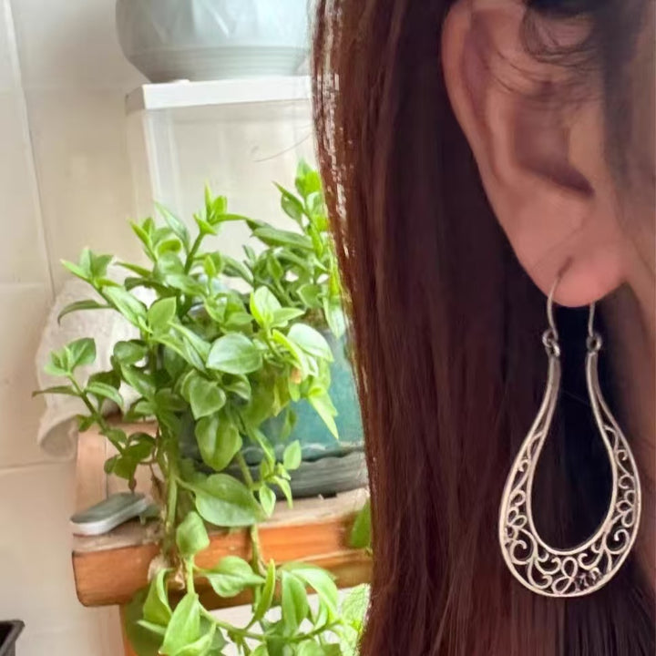 Unique Filigree Teardrop Silver Design: The combination of intricate filigree scrollwork and teardrop shaping creates a distinct bohemian look. It’s both elegant and versatile, effortlessly complementing a range of outfits from flowy bohemian dresses to sleek modern ensembles.