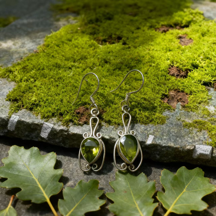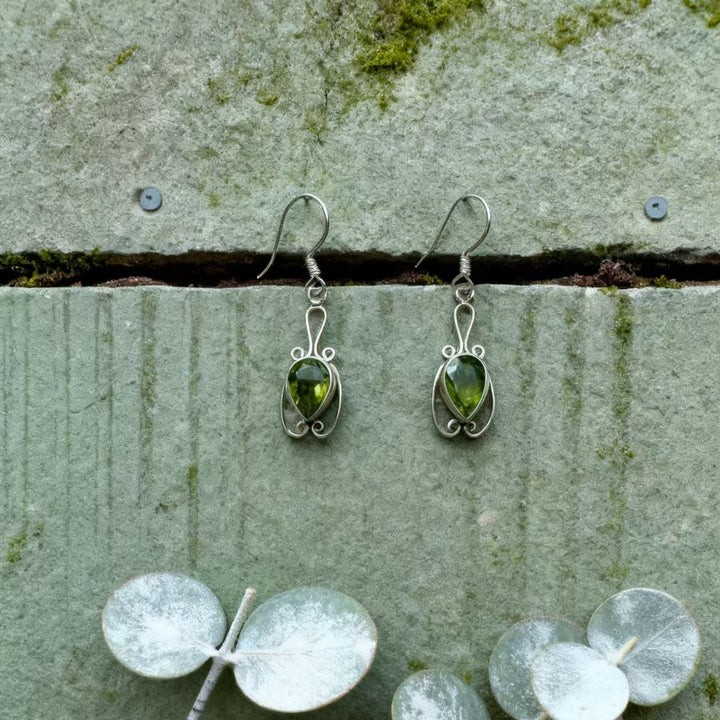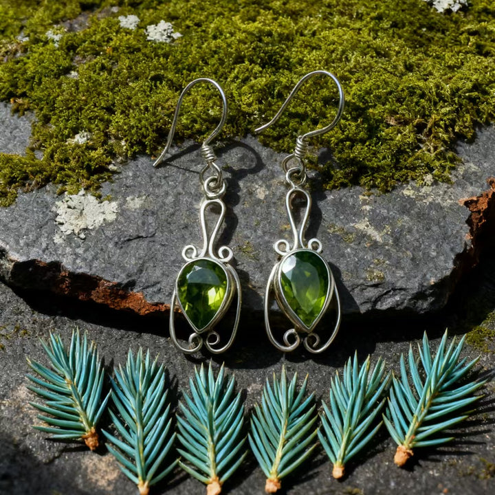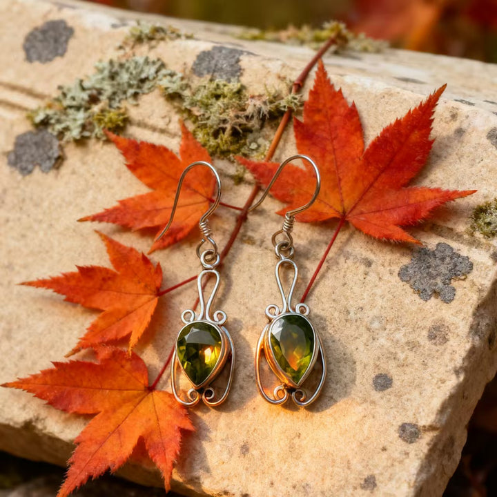 Unique Filigree Peridot & Silver Design: The combination of peridot accents, intricate silver filigree detailing, and teardrop structuring creates a distinct bohemian-timeless look. It’s both elegant and versatile, effortlessly complementing a range of outfits from flowy bohemian dresses to sleek modern ensembles.