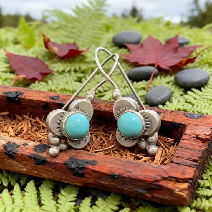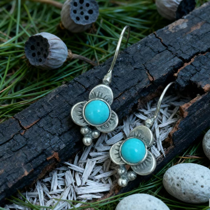 Artisan Handmade: Meticulously crafted by hand, each pair is one-of-a-kind. Every step, from shaping the 925 sterling silver into floral forms to setting the turquoise gems, reflects exceptional craftsmanship and attention to detail.