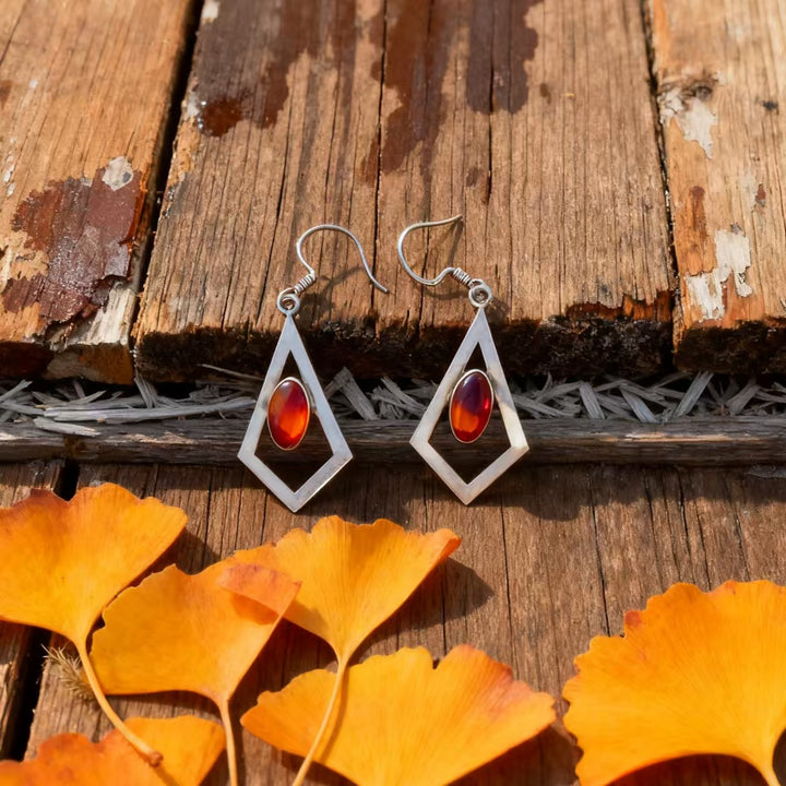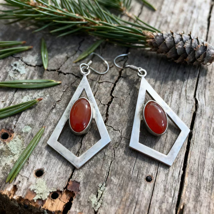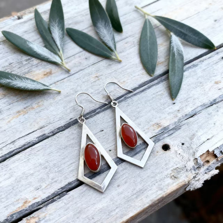 The craftsmanship is evident in every detail, from the precise setting of each red agate stone to the meticulous shaping of the 925 sterling silver geometric elements. These earrings are a perfect blend of artistic flair and contemporary charm, ideal for women drawn to bohemian and geometric-inspired accessories. Whether you’re at a creative event, a casual gathering, or simply infusing your daily look with boho sophistication, these earrings are sure to become a beloved part of your jewelry collection.