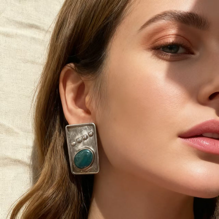 Artisan Handmade: Meticulously crafted by hand, each pair is one-of-a-kind. Every step, from shaping the 925 sterling silver into rectangle forms to setting the turquoise gems, reflects exceptional craftsmanship and attention to detail.