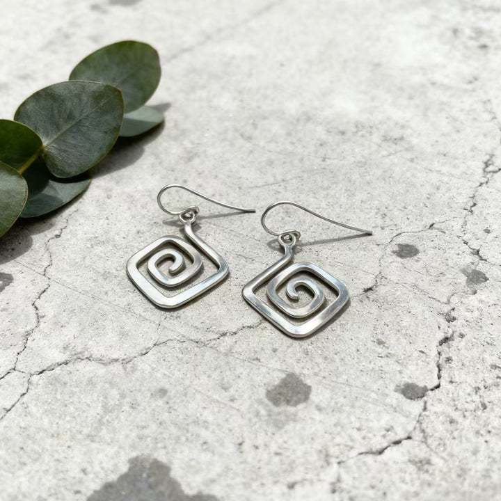 Handmade Bohemian 925 Sterling Silver Geometric Spiral Dangle Earrings