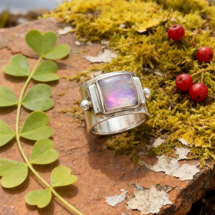 The artistry is evident in every detail, from the precise setting of the moonstone to the meticulous forging of the 925 sterling silver band. This ring is a perfect blend of artistic boldness and wearable sophistication, ideal for women drawn to bohemian, statement-making, and handcrafted accessories. Whether worn as a focal point of your outfit, a symbol of spiritual connection, or a daily expression of artistic flair, this ring is sure to become a cherished part of your jewelry collection.