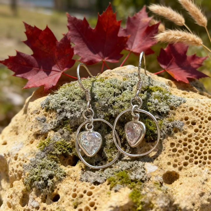 Artisan Handmade: Meticulously crafted by hand, each pair is one-of-a-kind. Every step, from shaping the 925 sterling silver into heart and circular forms to setting the zircon gems, reflects exceptional craftsmanship and attention to detail.