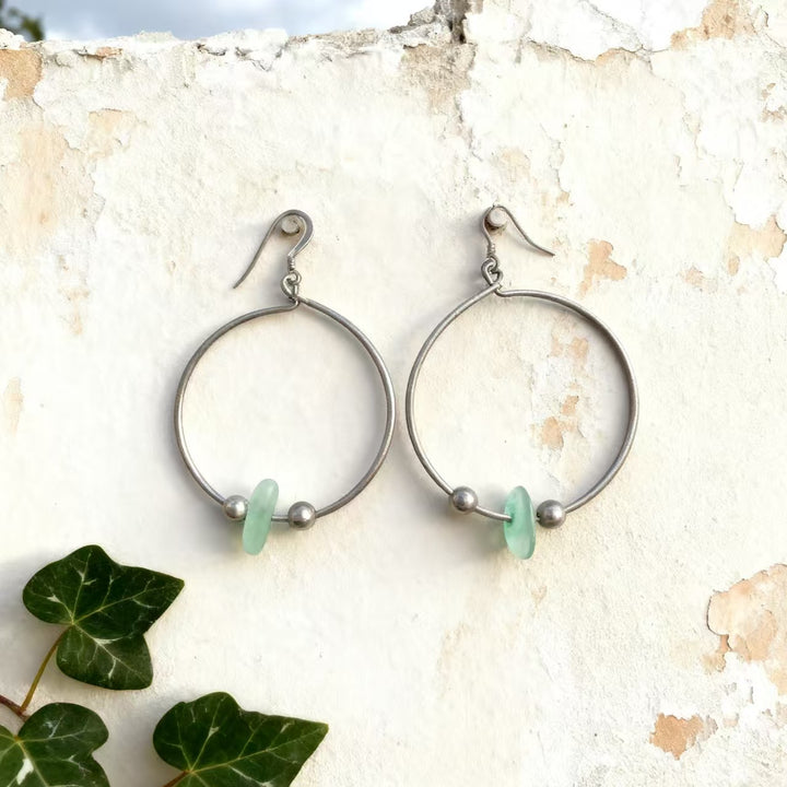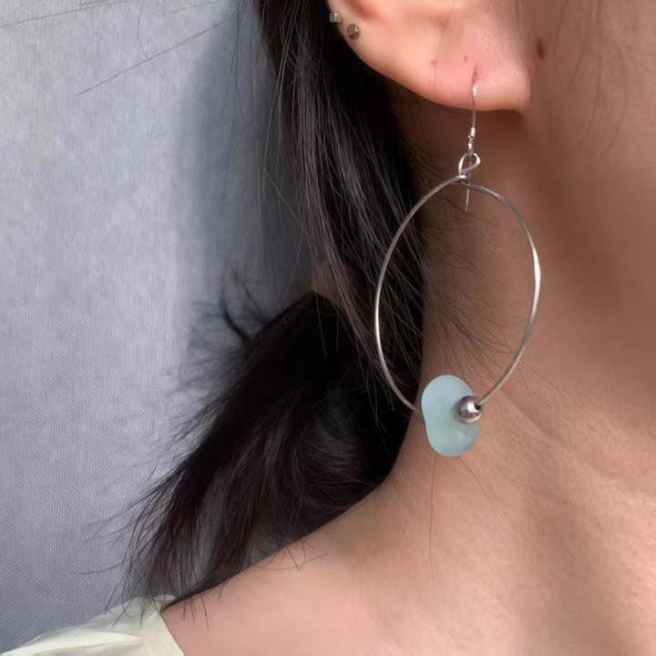 Unique Irregular Aquamarine & Silver Hoop Design: The combination of irregular aquamarine and polished silver hoop detailing creates a distinct bohemian look. It’s both eye-catching and beach-inspired, effortlessly complementing a range of outfits from flowy bohemian dresses to casual denim ensembles.